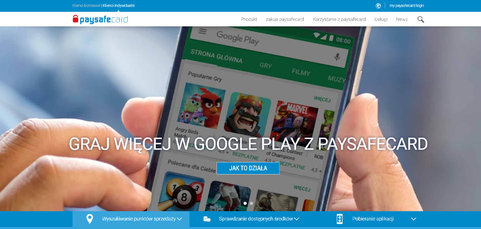 Paysafecard to łatwo dostępne płatności dla wszystkich, którzy ich potrzebują. Firma oferuje nie tylko przedpłacone vouchery, ale również i serwis Internetowy My Paysafecard, przedpłaconą kartę debetową MasterCard i aplikacje na urządzenia mobilne. Ogromny sukces, jaki osiągnęła ta firma to wynik stale rosnącej liczby partnerów, oraz nieprzerwanej rozbudowany infrastruktury dystrybucyjnej, która pokrywa już 46 krajów na całym świecie. Paysafecard jako jedna z wiodących firm płatności elektronicznych na świecie, dokłada wszelkich starań, aby oferowany serwis i jakość produktów stał na najwyższym poziomie.